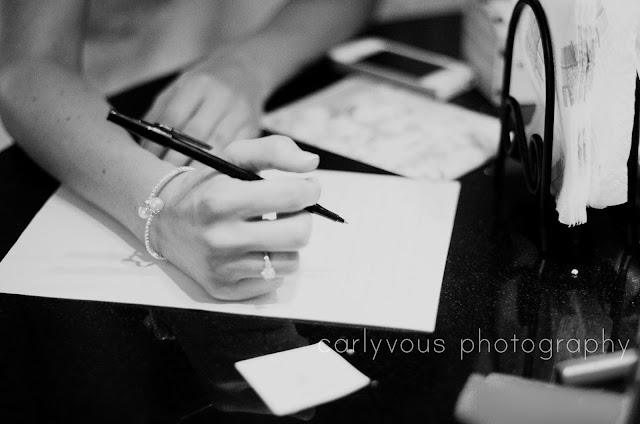 | Ashley wrote Garett a beautiful note before the ceremony--it was really lovely watching him read it before she walked down the aisle :) |